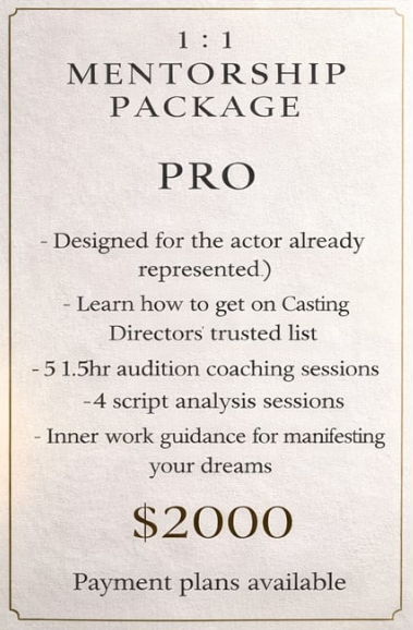 Custom demo reels, virtual and in person audition coaching, self taping and mentorship for serious actors